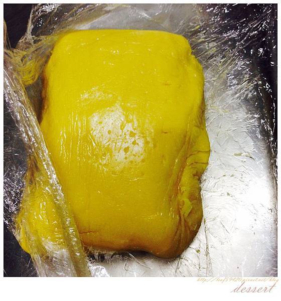 接著把它分兩坨就可以開始進行烤盤壓膜囉!!