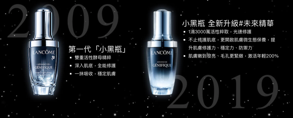 特別查了全新升級的 #未來精華和第一代「小黑瓶」來做參考
